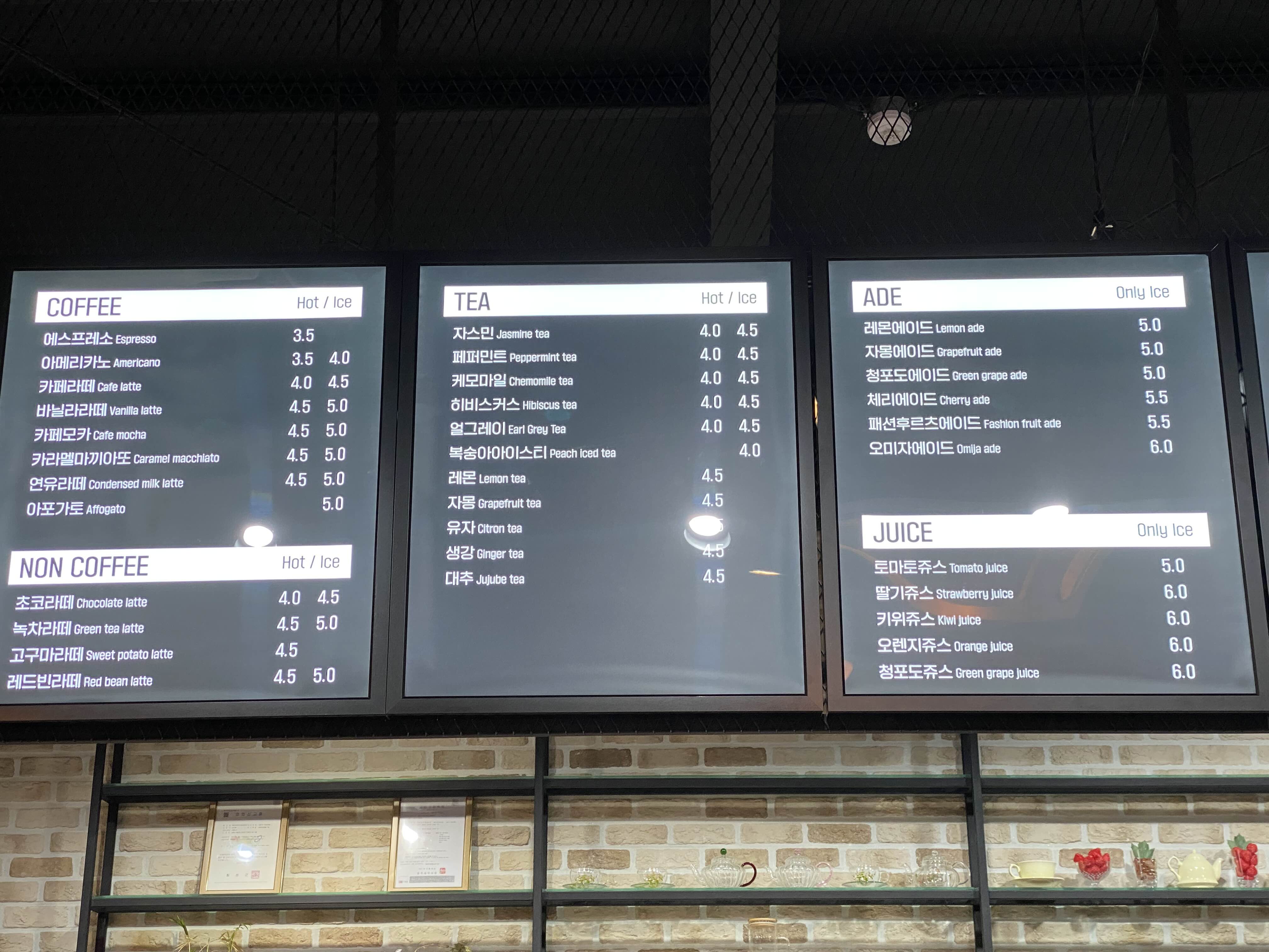 커피부터 논 커피, 티, 에이드, 주스,