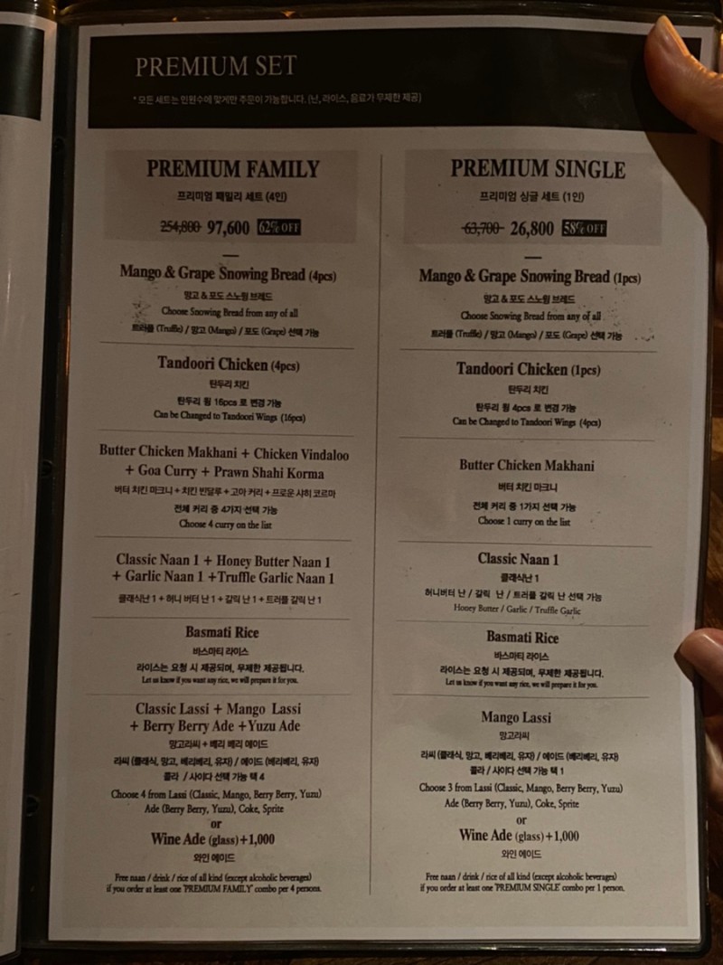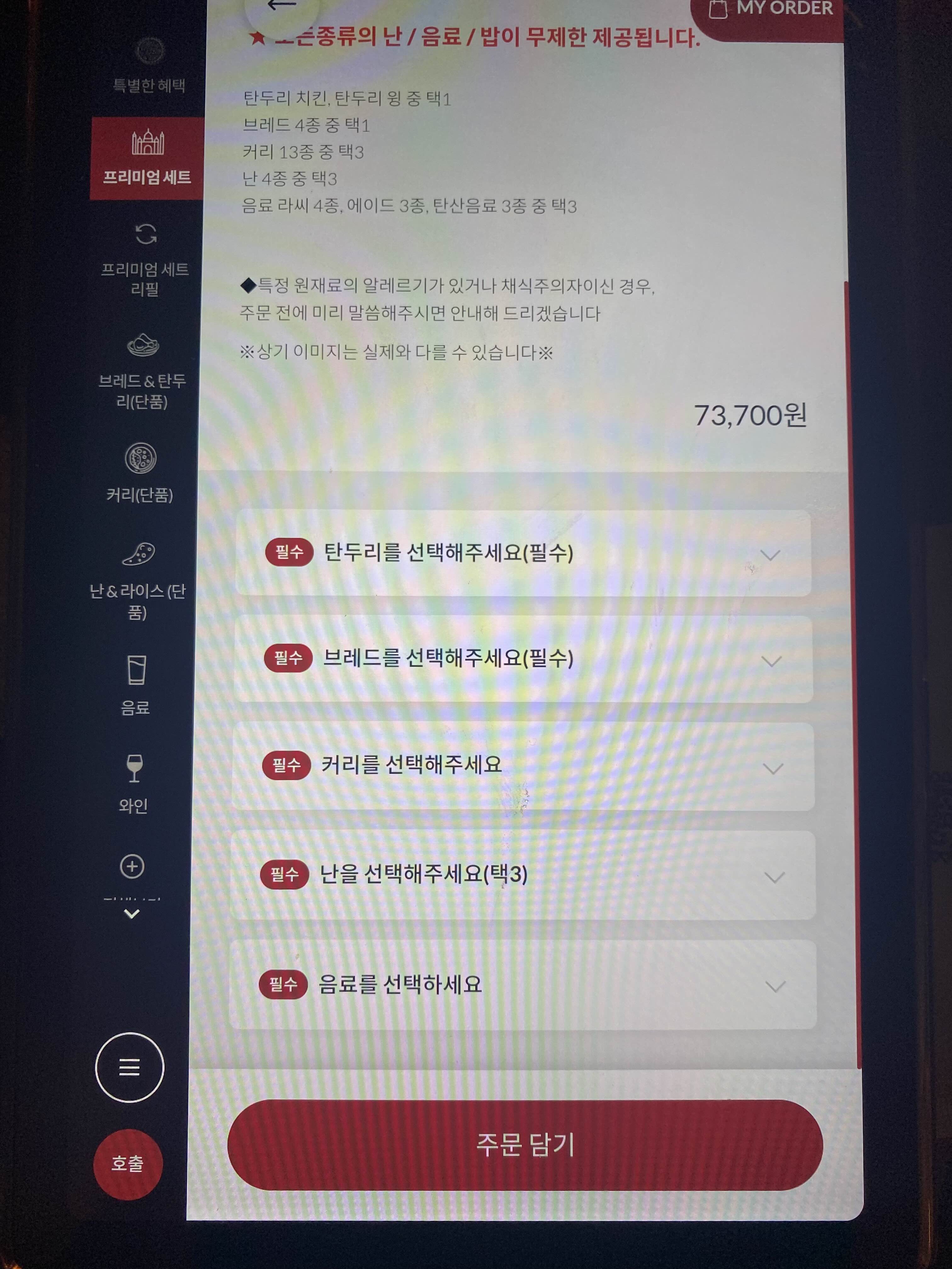 프리미엄 세트에 있는 탄두리 치킨