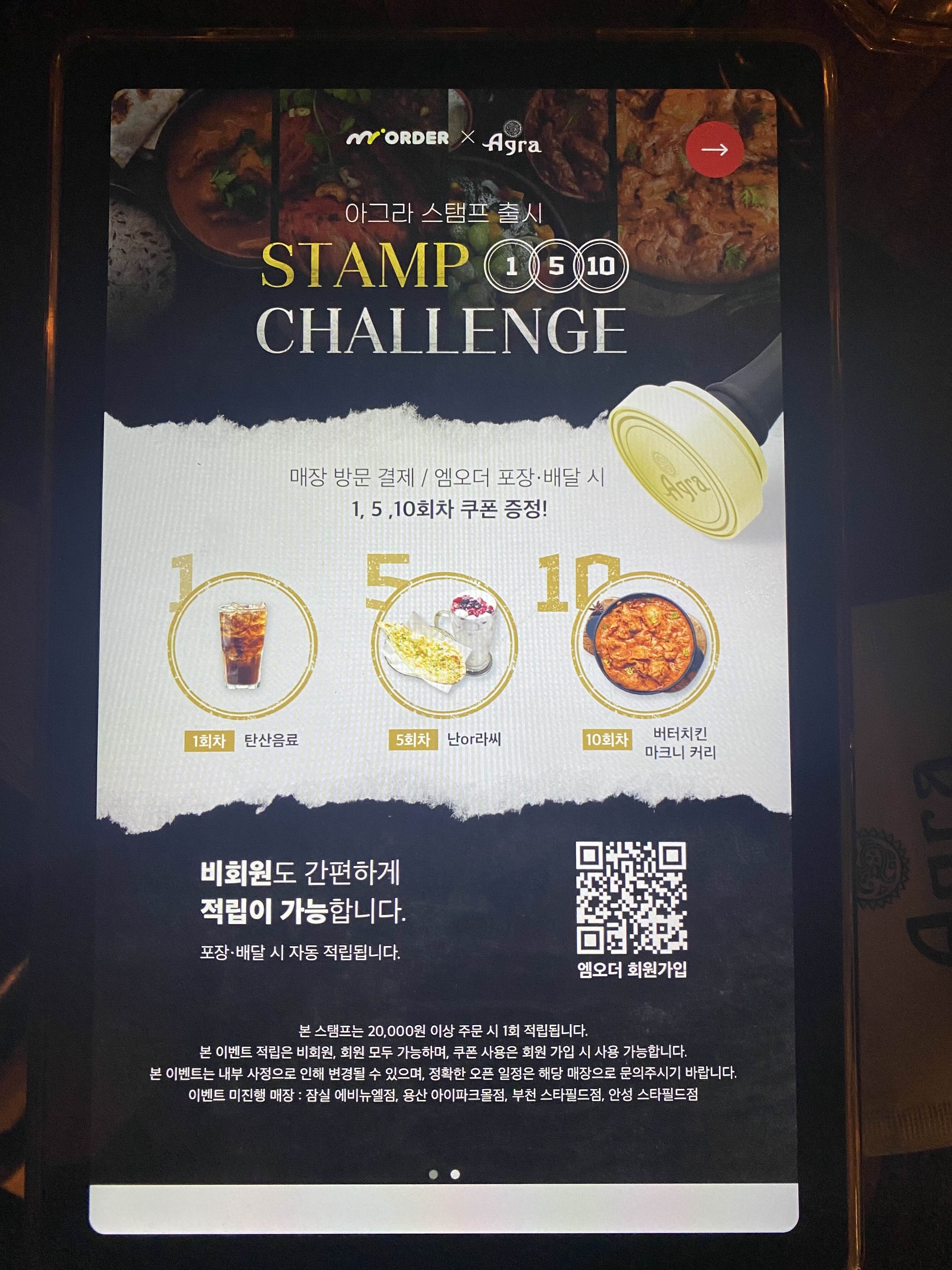 매장 방문, 포장, 배달 시 스탬프 적립이 생겼고,