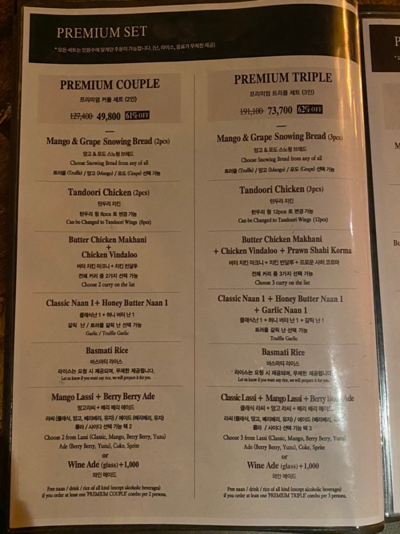 - 커리 & 난 & 라이스 (난, 라이스 무한제공)
