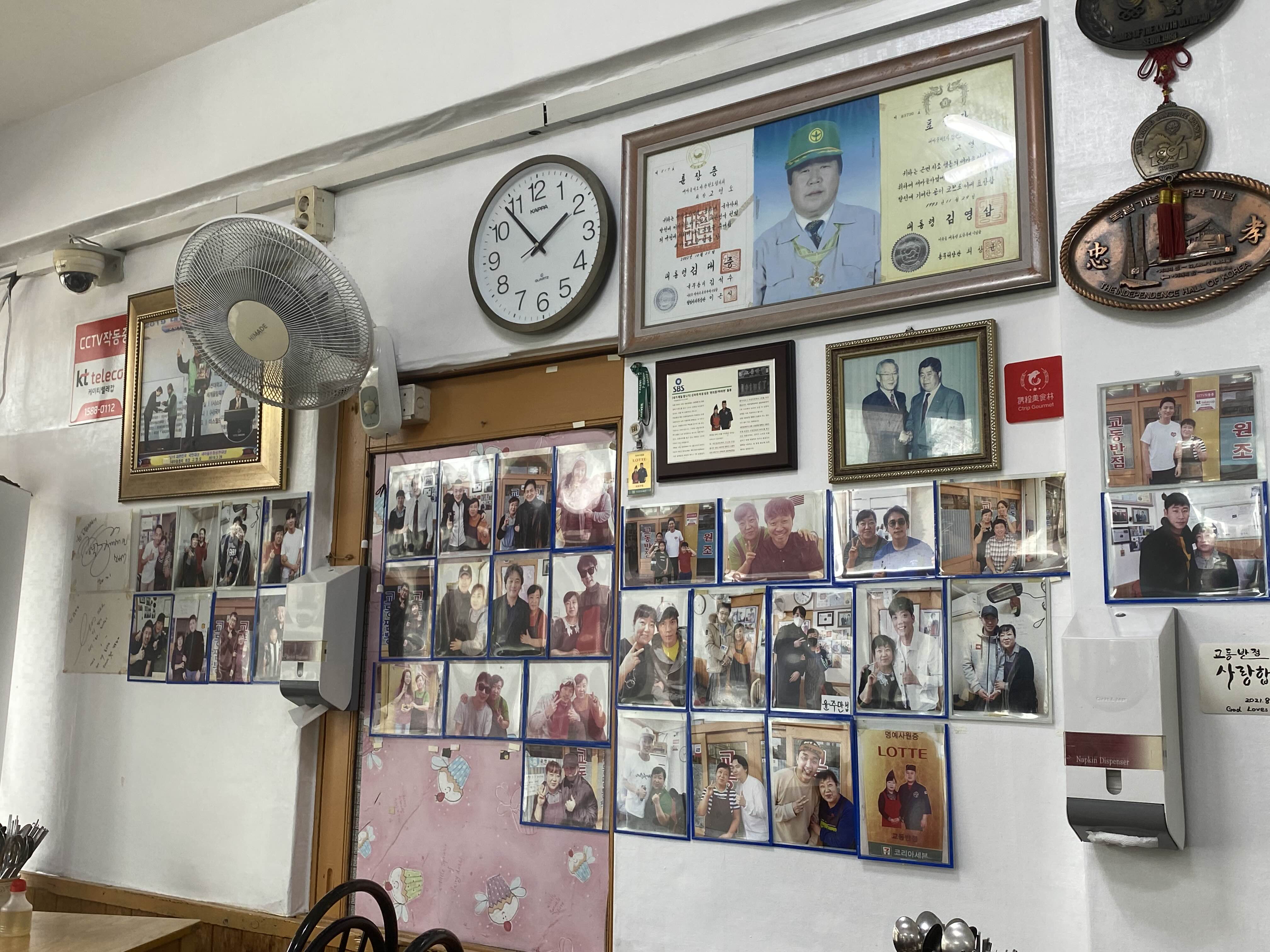 가게 안에 빼곡한 유명인들의 싸인과 사진들이